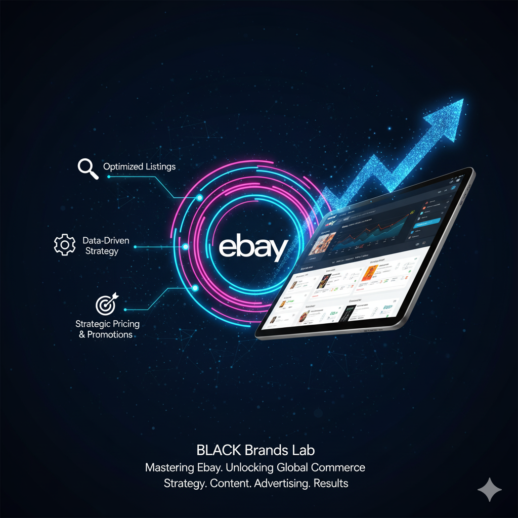 At BLACK Brands Lab, we help brands unlock the power of eBay — one of the world’s most trusted and established online marketplaces. With millions of active buyers and a global reach, eBay offers tremendous opportunities for sellers to expand their business. But standing out in such a competitive environment requires more than just posting products. That’s where we come in.