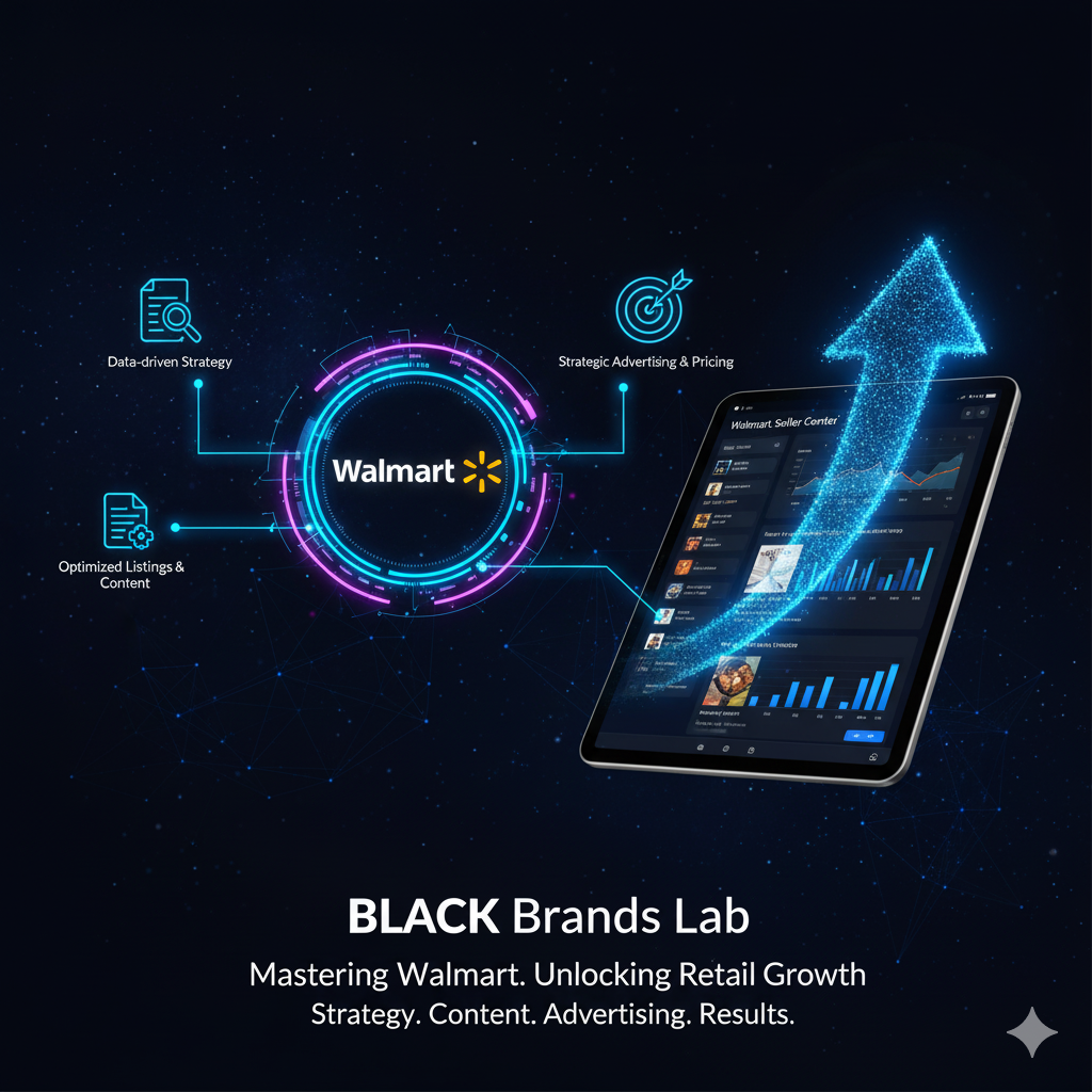 At BLACK Brands Lab, we help brands maximize their growth on Walmart Marketplace — one of the fastest-growing eCommerce platforms in the world. With millions of active shoppers and a rapidly expanding digital presence, Walmart presents huge opportunities for sellers who know how to position their products effectively. That’s where we come in.